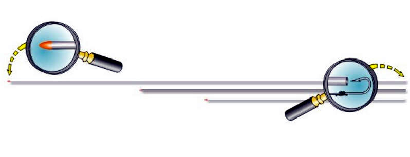 - Χάρη στη φωσφορούχα πλαστική μύτη/οδηγό που διαθέτει μπορούμε να περάσουμε τα σκουλήκια πολύ εύκολα χωρίς να τα τραυματίζουμε.