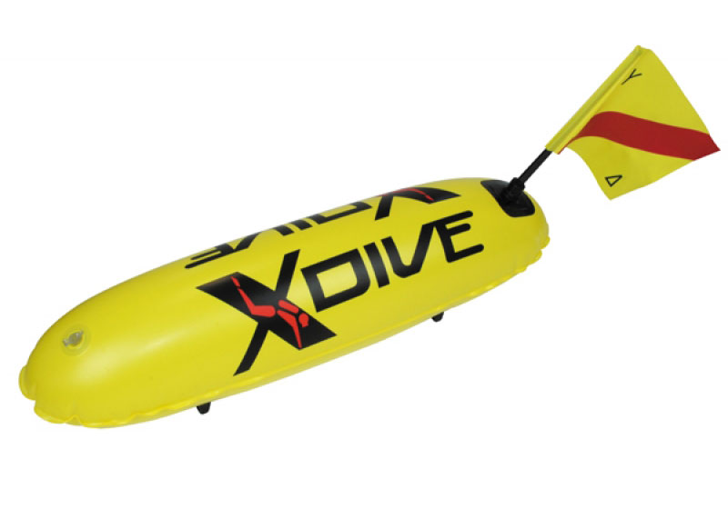 Σημαδούρα δύτου μονού θαλάμου σε σχήμα “τορπίλη” σε κίτρινο και πορτοκαλί χρώμα