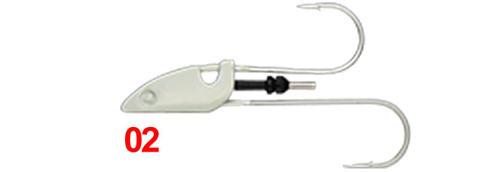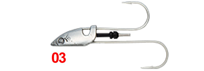 Όπως μπορούμε να δούμε το jighead είναι εφοδιασμένο με δύο ισχυρά-ποιοτικά single hook, ένα στο πάνω μέρος που είναι πιο κοντό καθώς κι ένα πιο μακρύ στο κάτω μέρος, με στόχο το σίγουρο κάρφωμα. Στο ενδιάμεσο υπάρχει ακόμη ένα μεταλλικό στοιχείο σαν «καρφί» στο οποίο τοποθετείται εύκολα και γρήγορα με μία κίνηση η σιλικόνη.